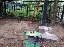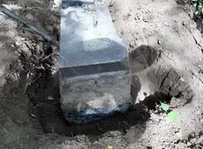 Первым делом мы принялись за демонтаж: сняли памятники с основания и поправили постаменты, надёжно укрепив их в земле. Таким образом мы избежали дальнейшего перекоса памятников и поставили оба надгробья на один уровень.