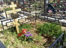 Исходное состояние: Холмик, крест, венки и простая ограда