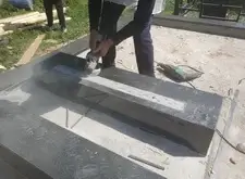 Зачищаем поверхность основания, на которой будет установлено надгробье, врезаем опорные арматурные штыри.